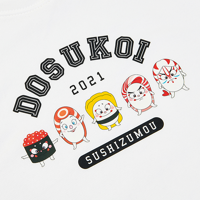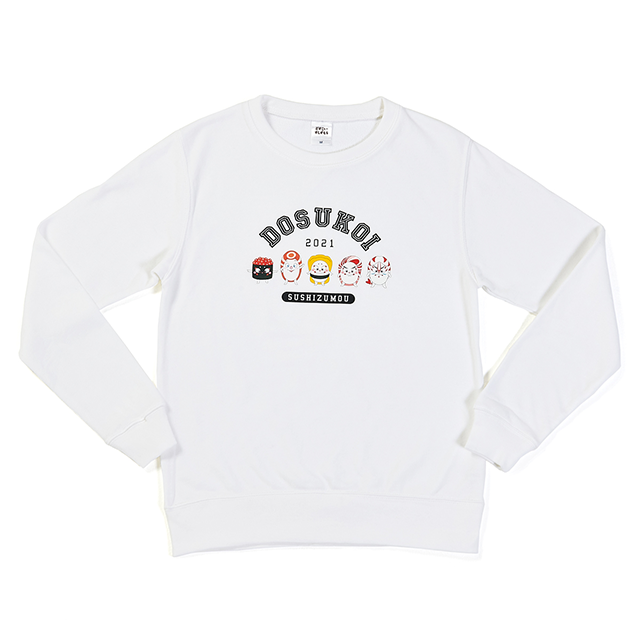 すし力士が5人そろったかわいいプリントのスウェットです。大人サイズ・子どもサイズを取り揃えているので沢山の人にすしずもう力士ファッションをお楽しみいただけます。