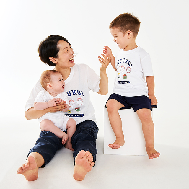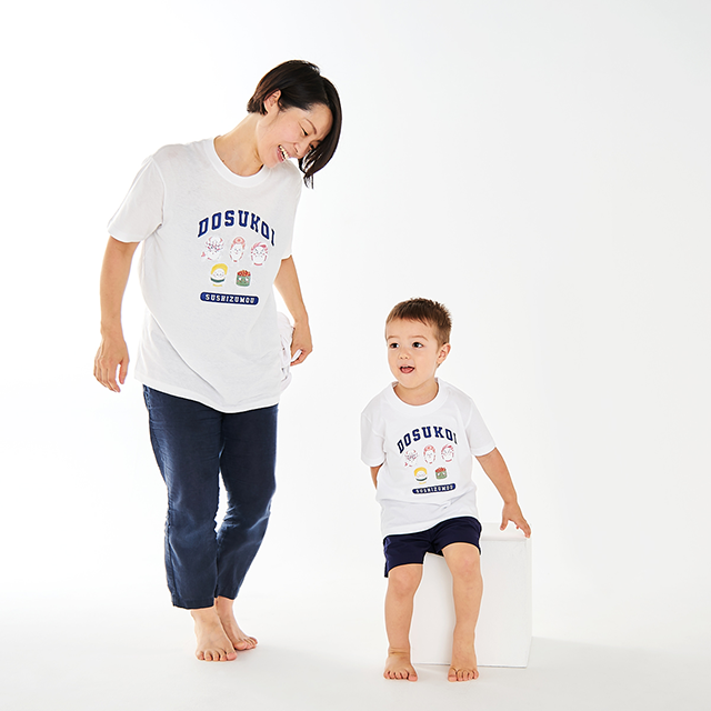 すし力士が5人そろったかわいいプリントのTシャツです。大人サイズ・子どもサイズを取り揃えているので沢山の人にすしずもう力士ファッションをお楽しみいただけます。